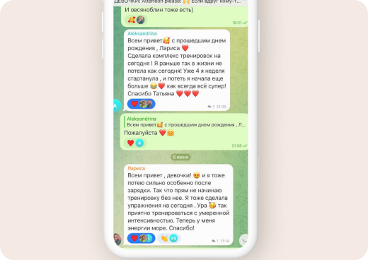 Делишься эмоциями и своими результатами в общем чате
